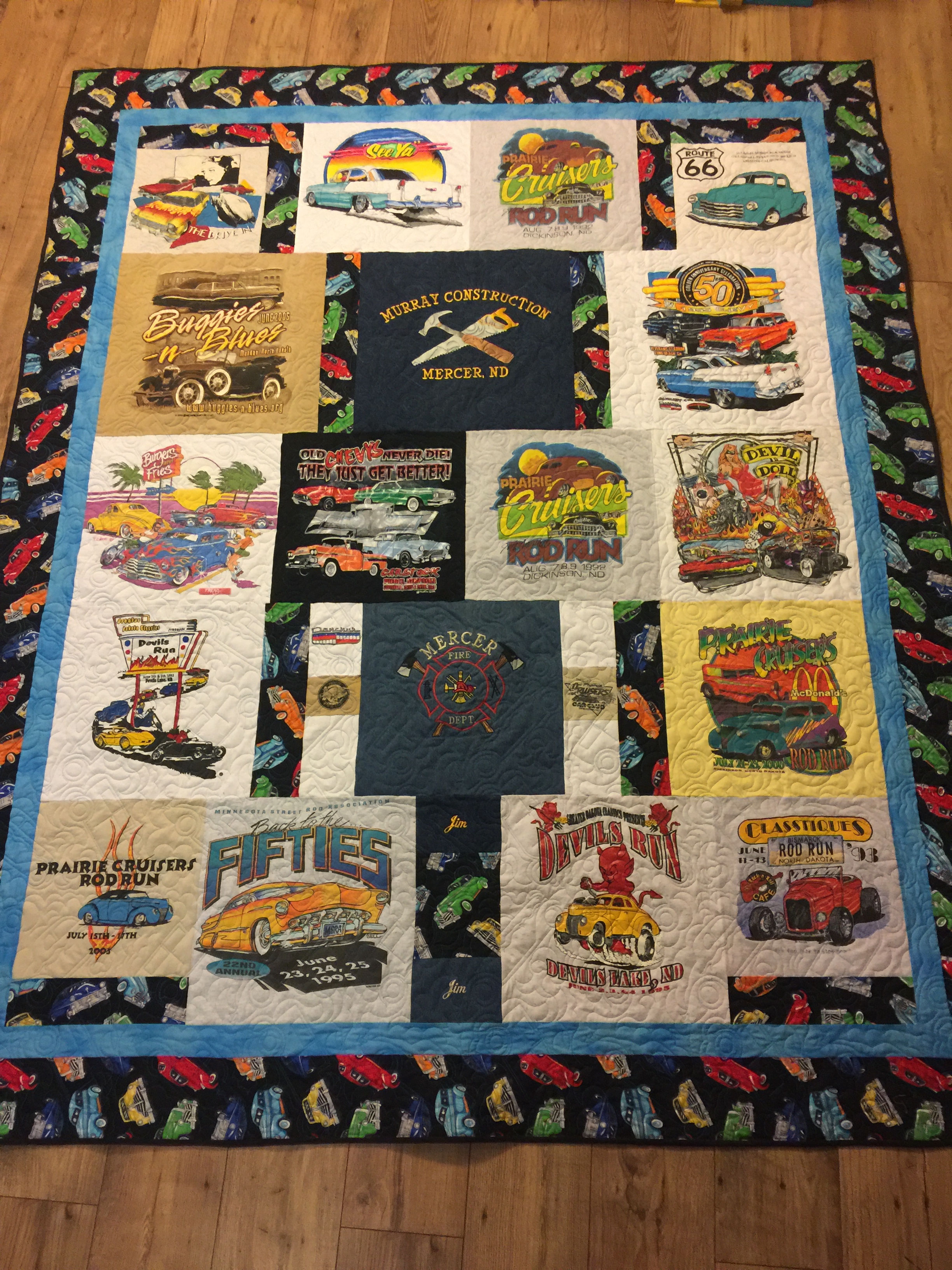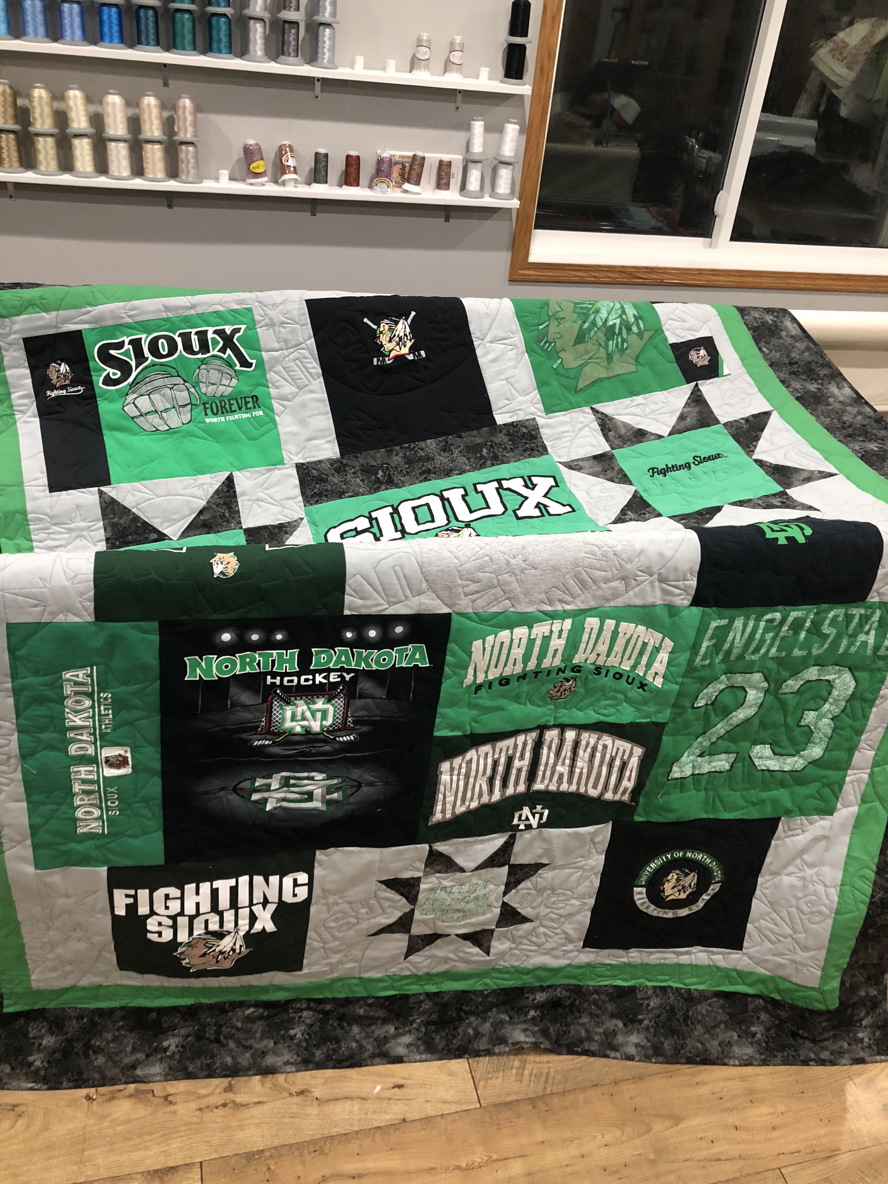 - Design quilt with your shirts